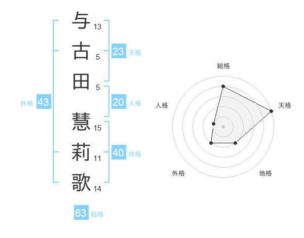 与古田 慧莉歌さんを姓名の画数から五運を鑑定