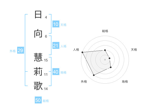 日向 慧莉歌さんを姓名の画数から五運を鑑定