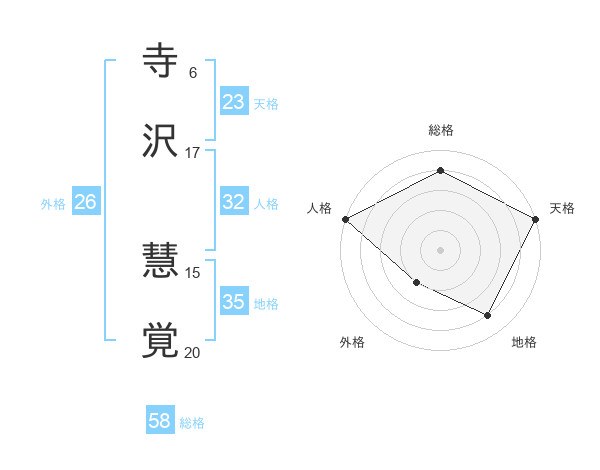 寺沢 慧覚さんの総格は58画の4点!