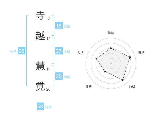寺越 慧覚さんの総格は53画の3点!