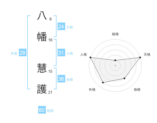 八幡 慧護さんの総格は60画の1点!