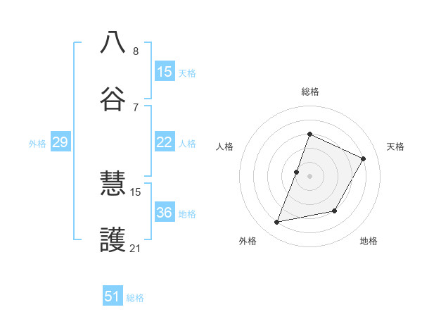 八谷 慧護さんの総格は51画の3点!