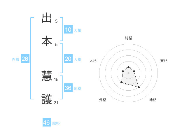 出本 慧護さんの総格は46画の1点!
