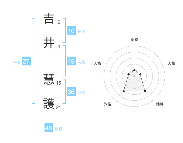 吉井 慧護さんの総格は46画の1点!