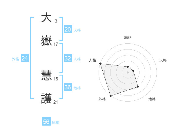 大嶽 慧護さんを姓名の画数から五運を鑑定