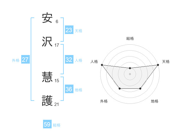 安沢 慧護さんの天格は23画の5点!