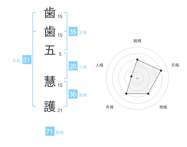 歯歯五 慧護さんの総格は71画の3点!