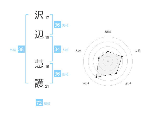 沢辺 慧護さんの天格は36画の3点!