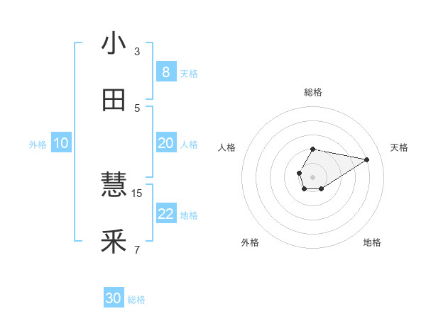 小田 慧釆さんを姓名の画数から五運を鑑定
