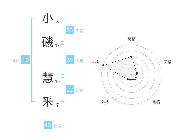 小磯 慧釆さんの総格は42画の3点!