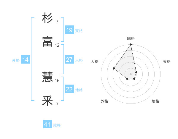 杉富 慧釆さんの総格は41画の5点!