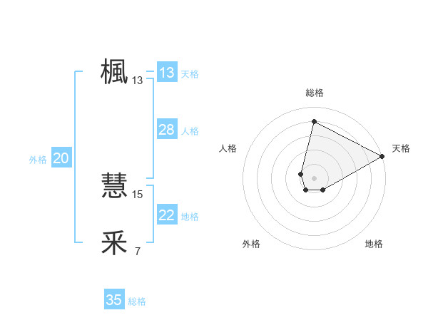 楓 慧釆さんの天格は13画の5点!