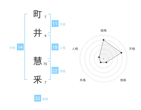 町井 慧釆さんの総格は33画の4点!