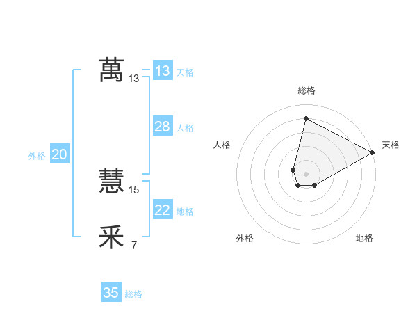 萬 慧釆さんを姓名の画数から五運を鑑定