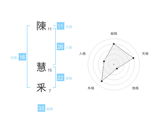 陳 慧釆さんを姓名の画数から五運を鑑定
