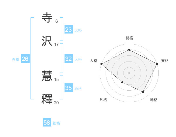 寺沢 慧釋さんの天格は23画の5点!