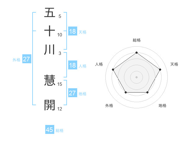 五十川 慧開さんを姓名の画数から五運を鑑定