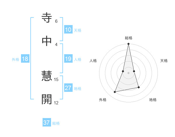 寺中 慧開さんを姓名の画数から五運を鑑定