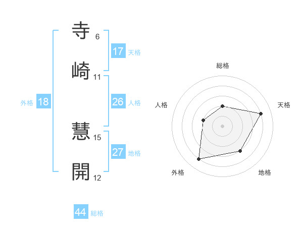 寺崎 慧開さんの天格は17画の4点!