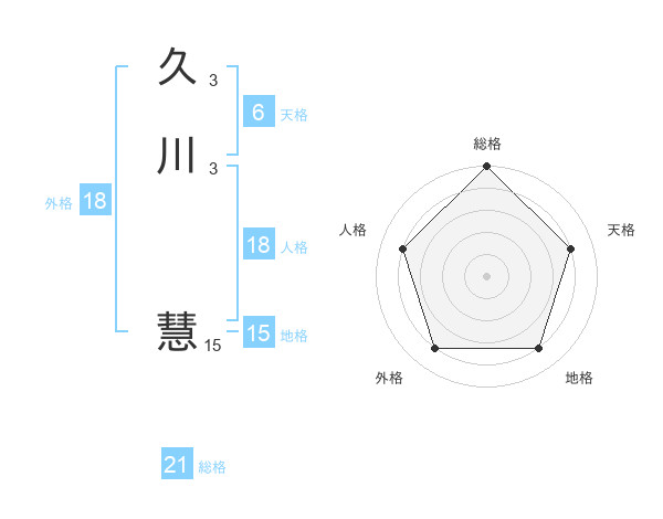 久川 慧さんの総格は21画の5点!
