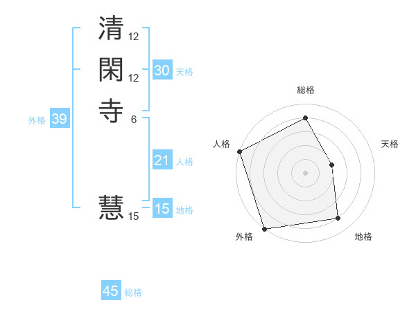 清閑寺 慧さんの外格は39画の5点!