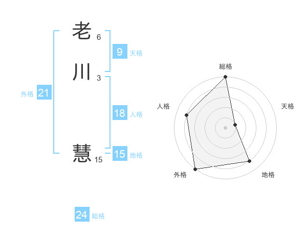老川 慧さんの総格は24画の5点!