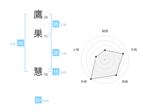 鷹巣 慧さんの総格は50画の2点!