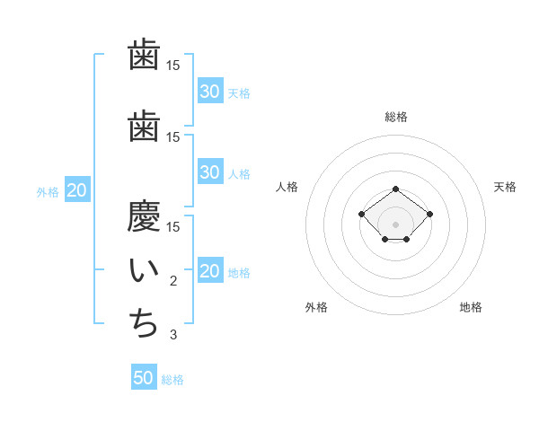 歯歯 慶いちさんの総格は50画の2点!