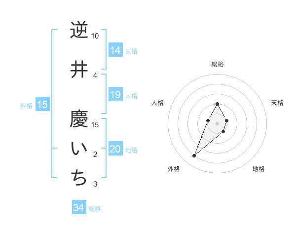 逆井 慶いちさんを姓名の画数から五運を鑑定