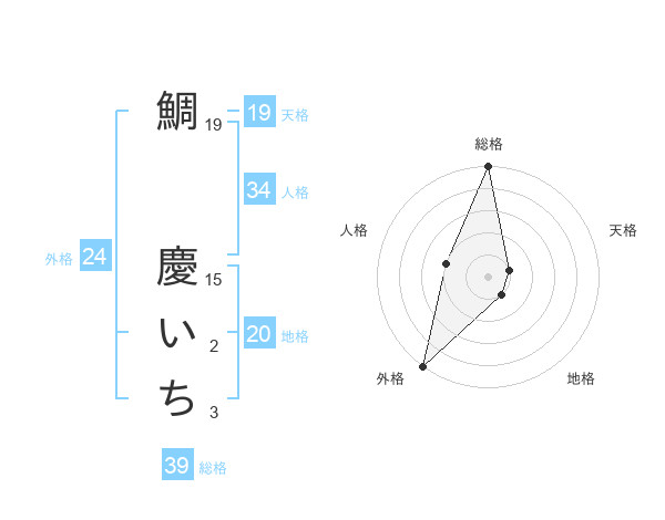 鯛 慶いちさんの地格は20画の1点!