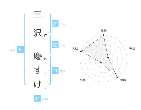 三沢 慶すけさんを姓名の画数から五運を鑑定