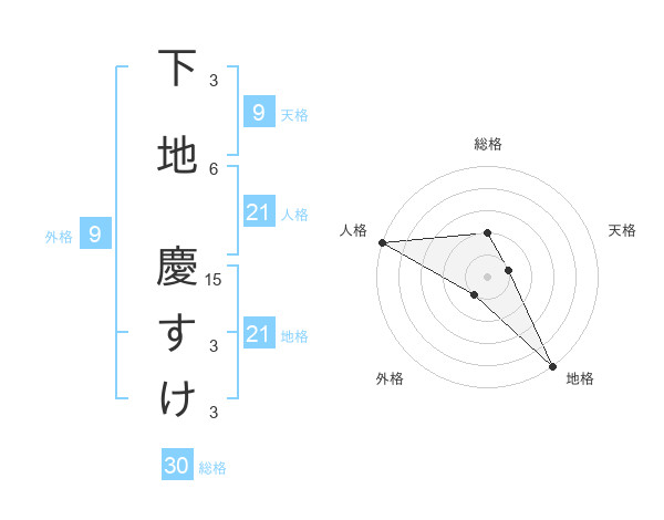 下地 慶すけさんの総格は30画の2点!
