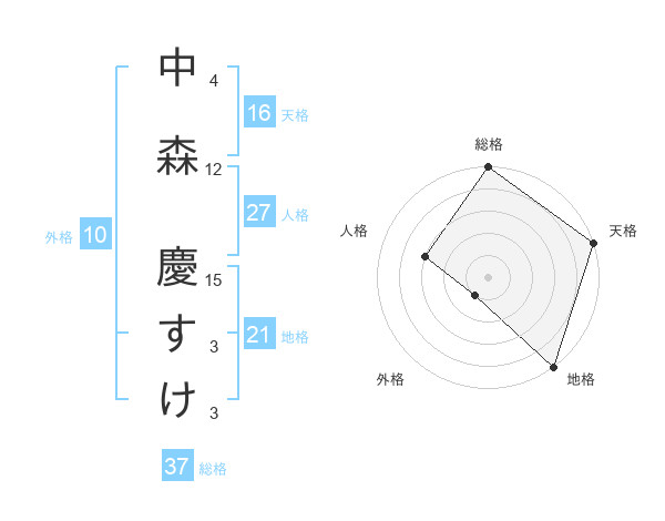 中森 慶すけさんを姓名の画数から五運を鑑定