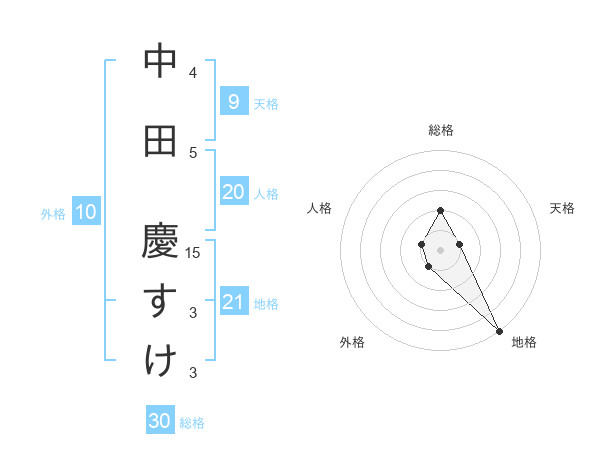 中田 慶すけさんの総格は30画の2点