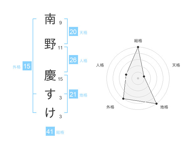 南野 慶すけさんを姓名の画数から五運を鑑定