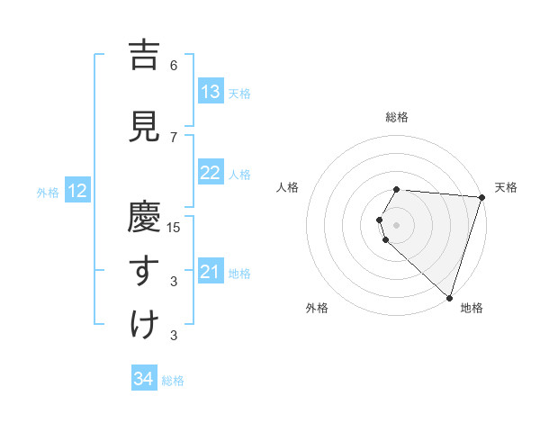 吉見 慶すけさんを姓名の画数から五運を鑑定
