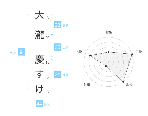 大瀧 慶すけさんを姓名の画数から五運を鑑定