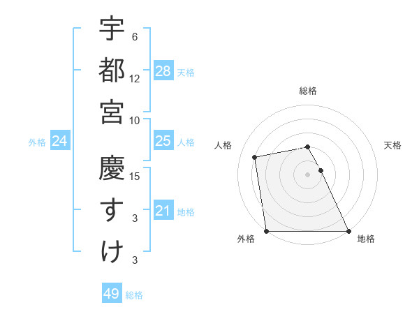 宇都宮 慶すけさんを姓名の画数から五運を鑑定