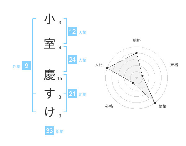 小室 慶すけさんを姓名の画数から五運を鑑定