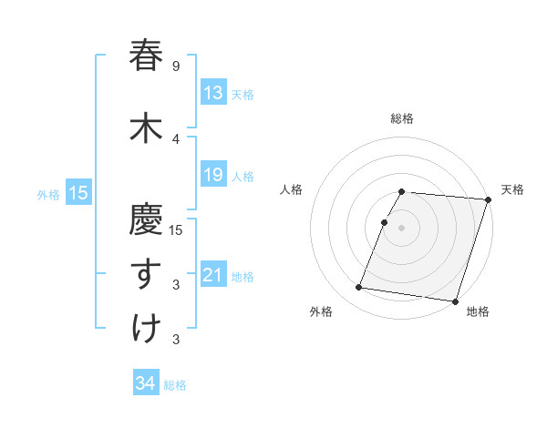 春木 慶すけさんを姓名の画数から五運を鑑定