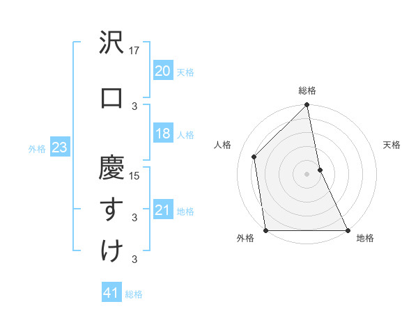 沢口 慶すけさんを姓名の画数から五運を鑑定