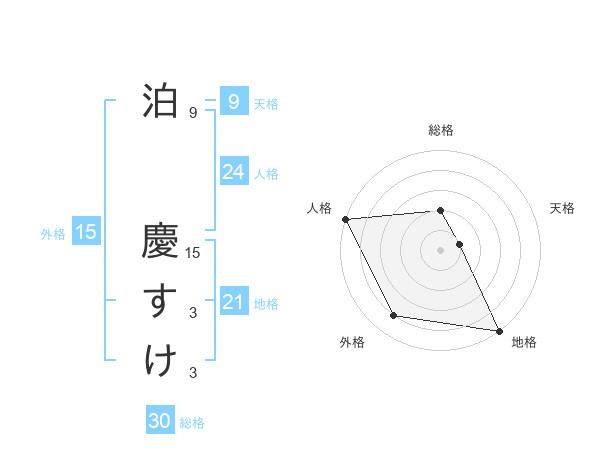 泊 慶すけさんを姓名の画数から五運を鑑定