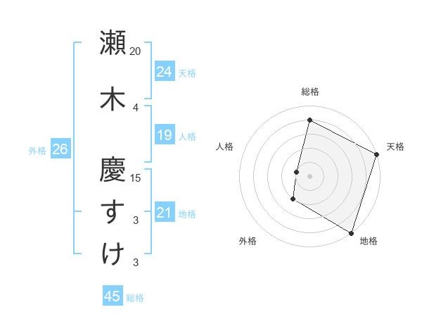 瀬木 慶すけさんを姓名の画数から五運を鑑定
