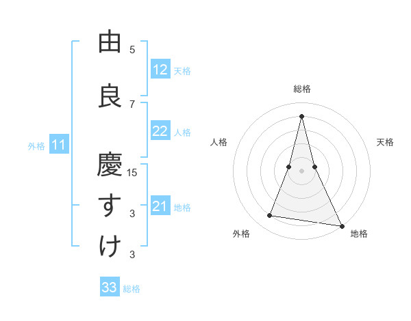 由良 慶すけさんを姓名の画数から五運を鑑定