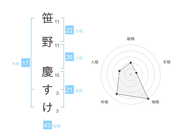 笹野 慶すけさんを姓名の画数から五運を鑑定