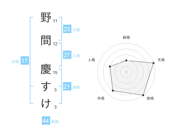野間 慶すけさんを姓名の画数から五運を鑑定