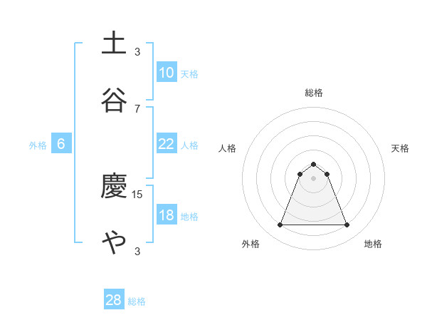 土谷 慶やさんの総格は28画の1点!