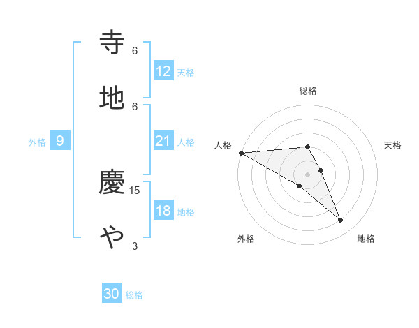 寺地 慶やさんの総格は30画の2点!
