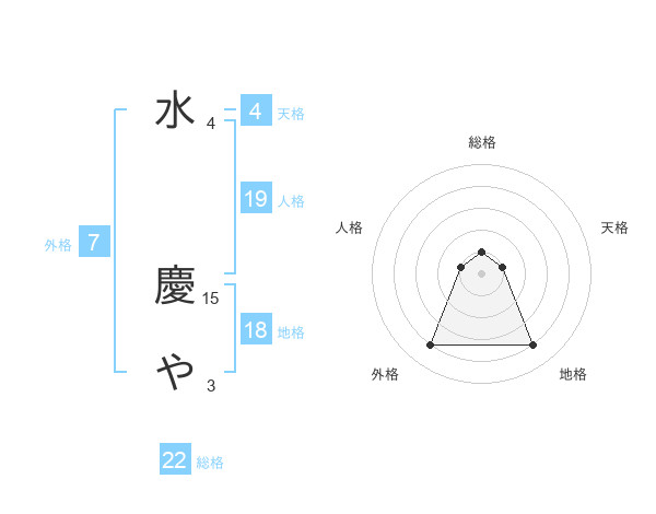 水 慶やさんの総格は22画の1点!