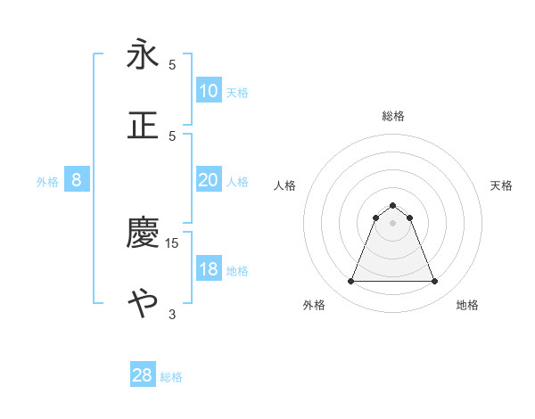 永正 慶やさんの外格は8画の4点!